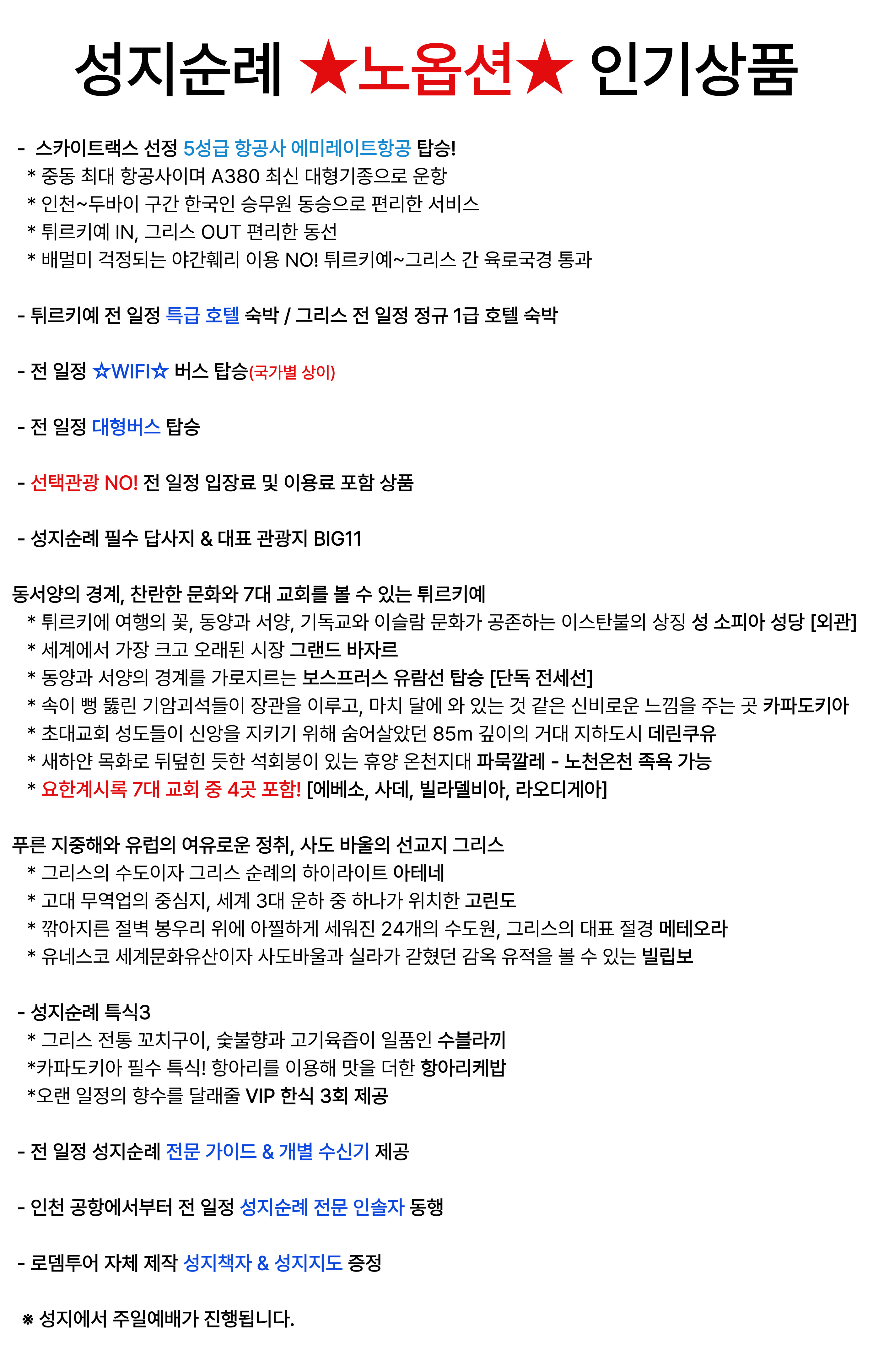 ★노옵션★ 튀르키예(7대 교회)/그리스(메테오라) 10일 에미레이트항공
