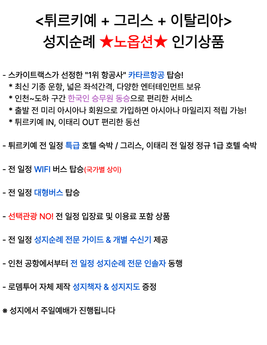 ★노옵션★ 튀르키예/그리스/이태리 12일 카타르항공