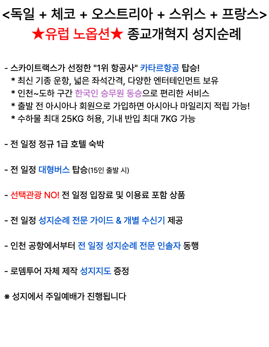 [종교개혁지] 독일/체코/오스트리아/스위스/프랑스 12일 카타르항공