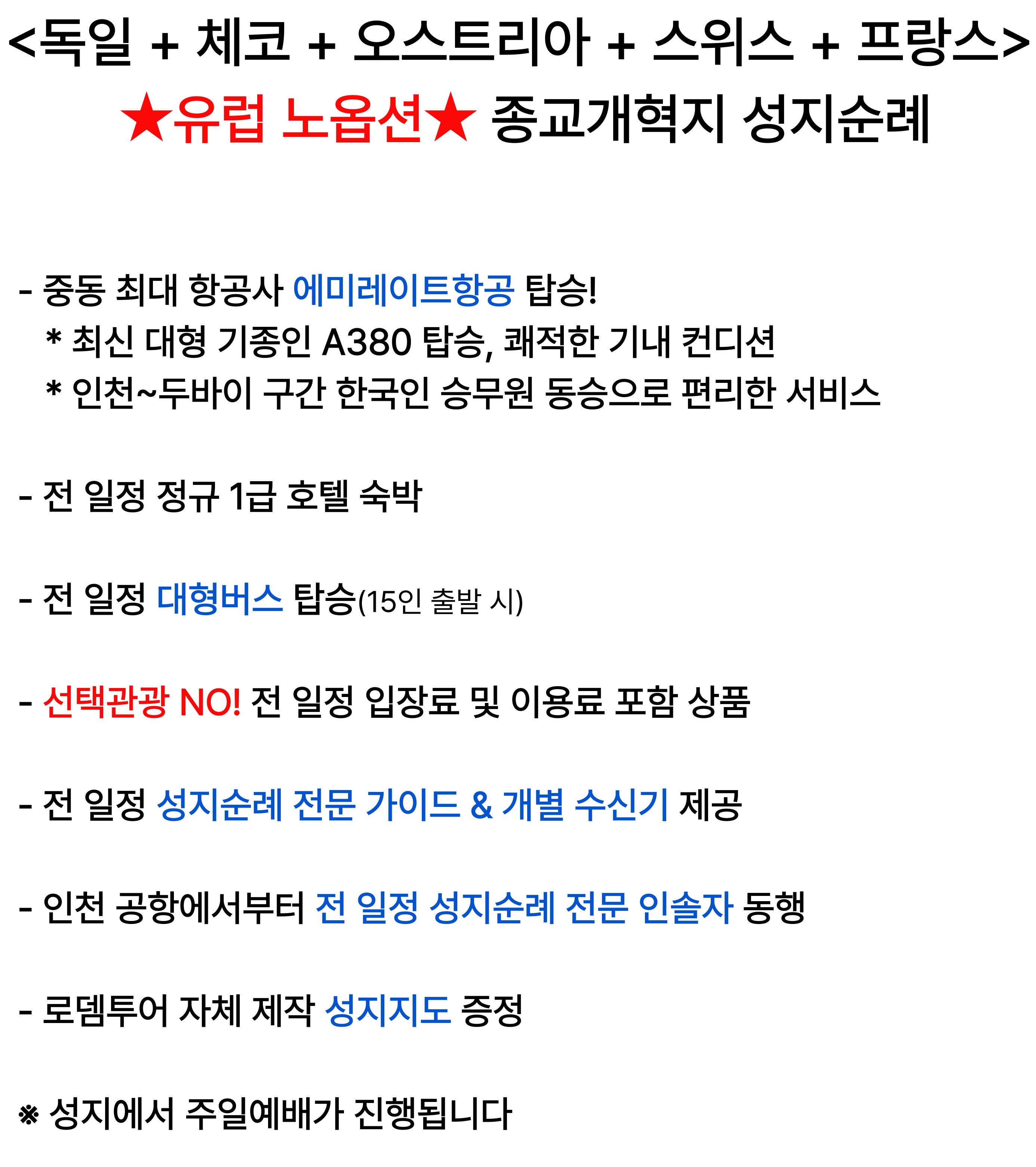 [종교개혁지] 독일/체코/오스트리아/스위스/프랑스 12일 에미레이트항공