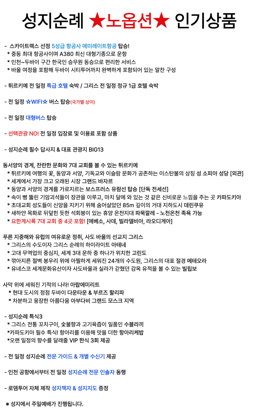 ★노옵션★두바이(시티투어) / 튀르키예(7대 교회) / 그리스(메테오라) 10일 에미레이트항공