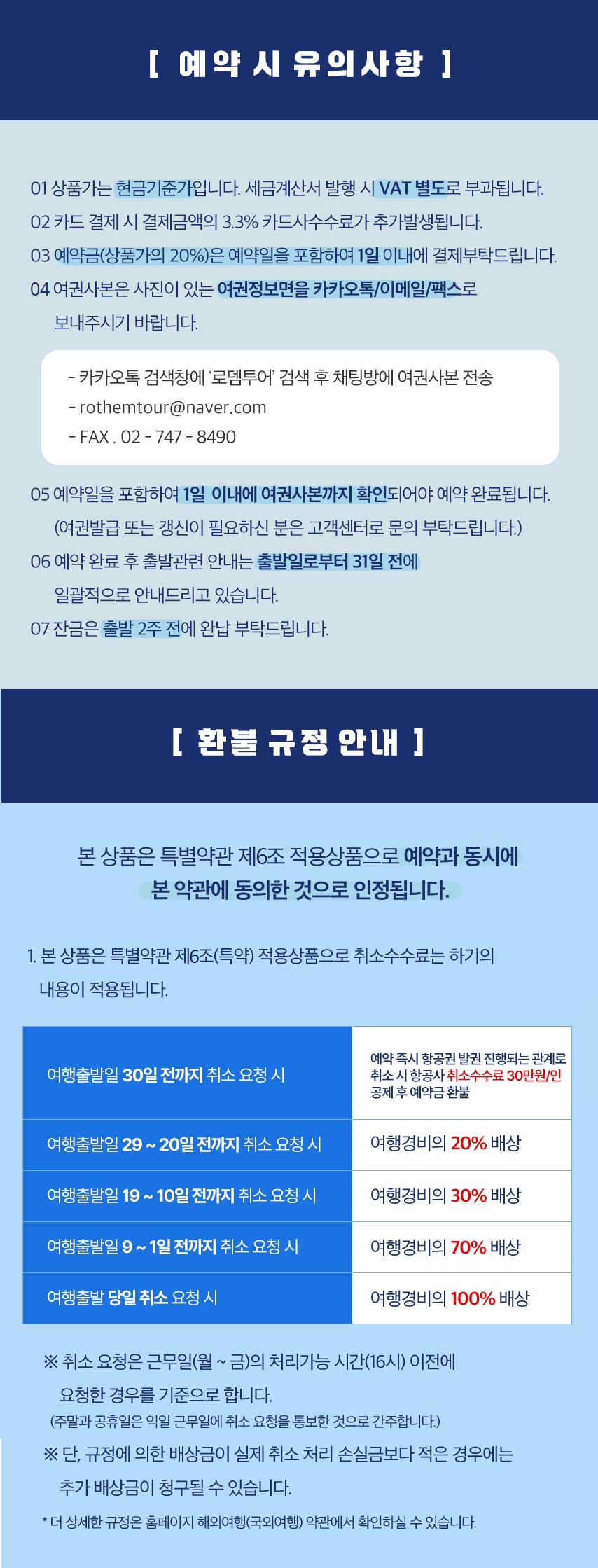 ※ 여행경비 입금 시 ‘㈜로뎀투어네트워크 법인’ 계좌가 아닌 다른 계좌로 입금하신 경우 발생하는 피해에 대하여 당사는 책임지지 않습니다. 타 계좌로 입금 유도가 있는 경우 반드시 로뎀투어네트워크 고객센터로 문의 및 신고 부탁드립니다.