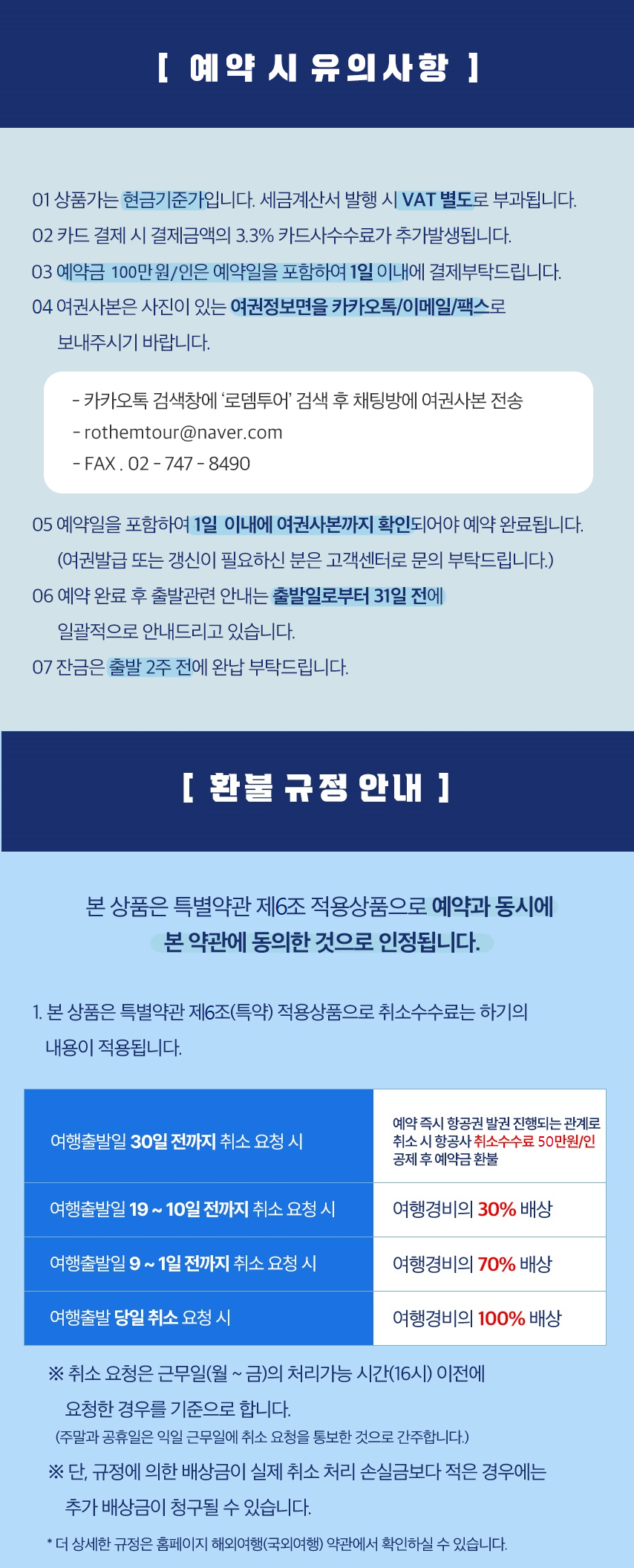 ◈ 야간 개별 행동은 자제해 주시고, 부득이하게 개별 행동을 할 경우 가이드 및 인솔자와 상의 후 진행해 주시기 바랍니다. 가이드가 동행하지 않는 개별 활동 중에 발생하는 사고의 모든 책임은 본인에게 있습니다.